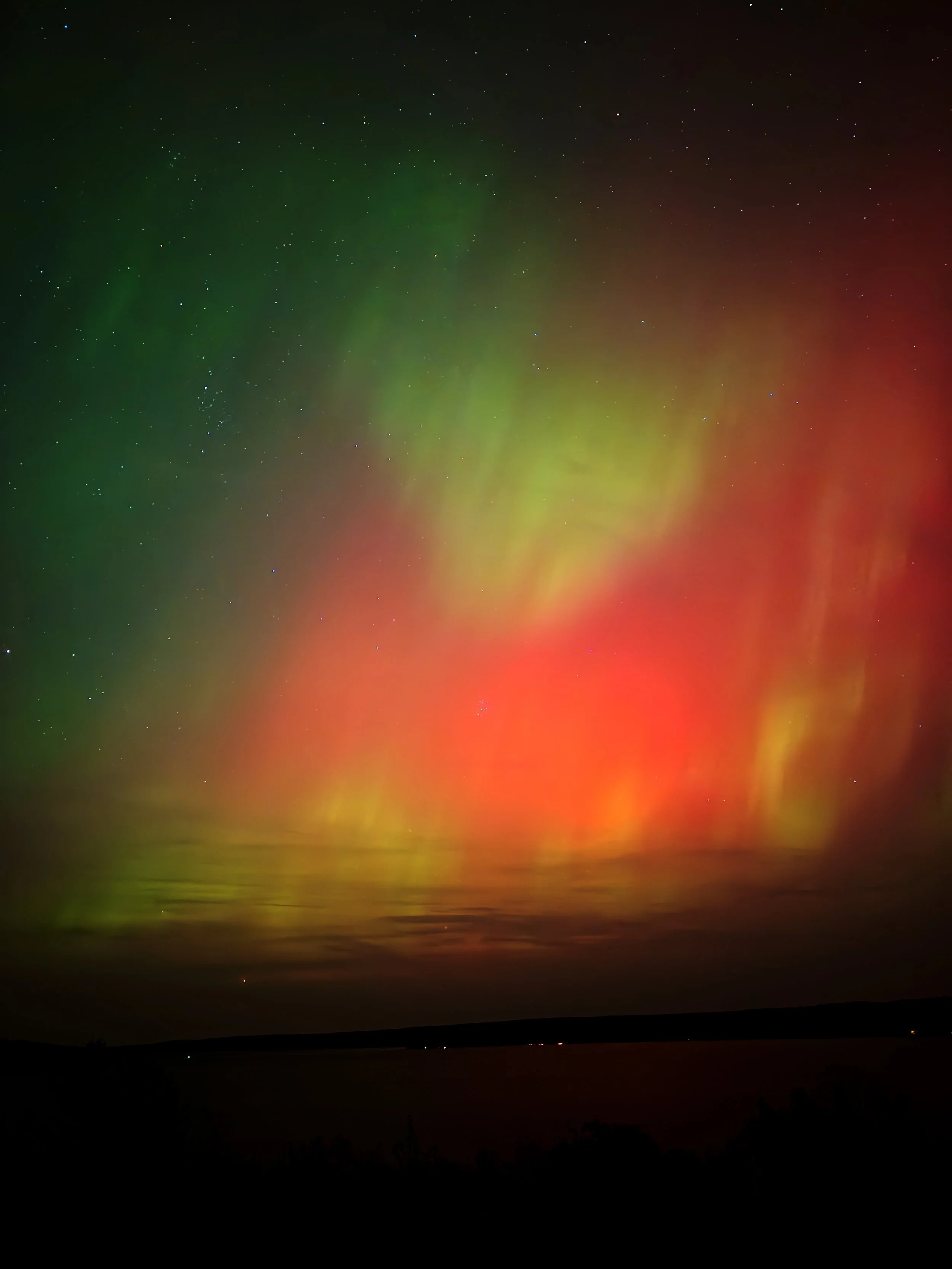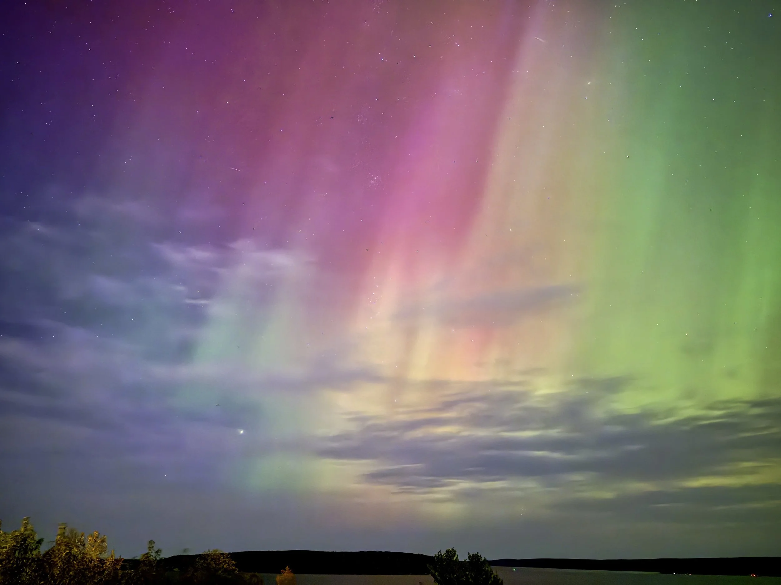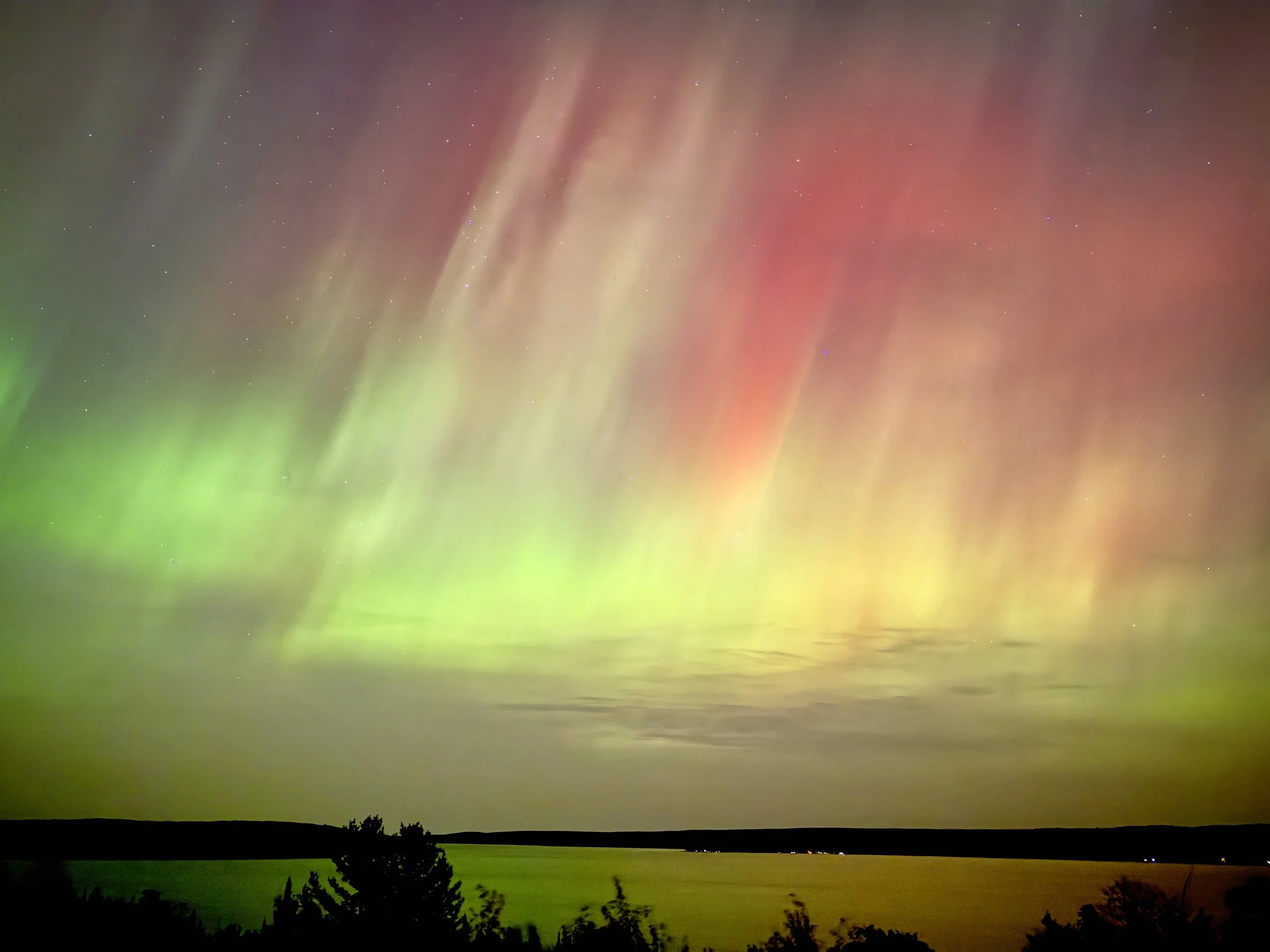 October 2024, in Munising Michigan, looking out over Grand Island Harbor Bay and Lake Superior provided an incredible display of the Northern Lights.